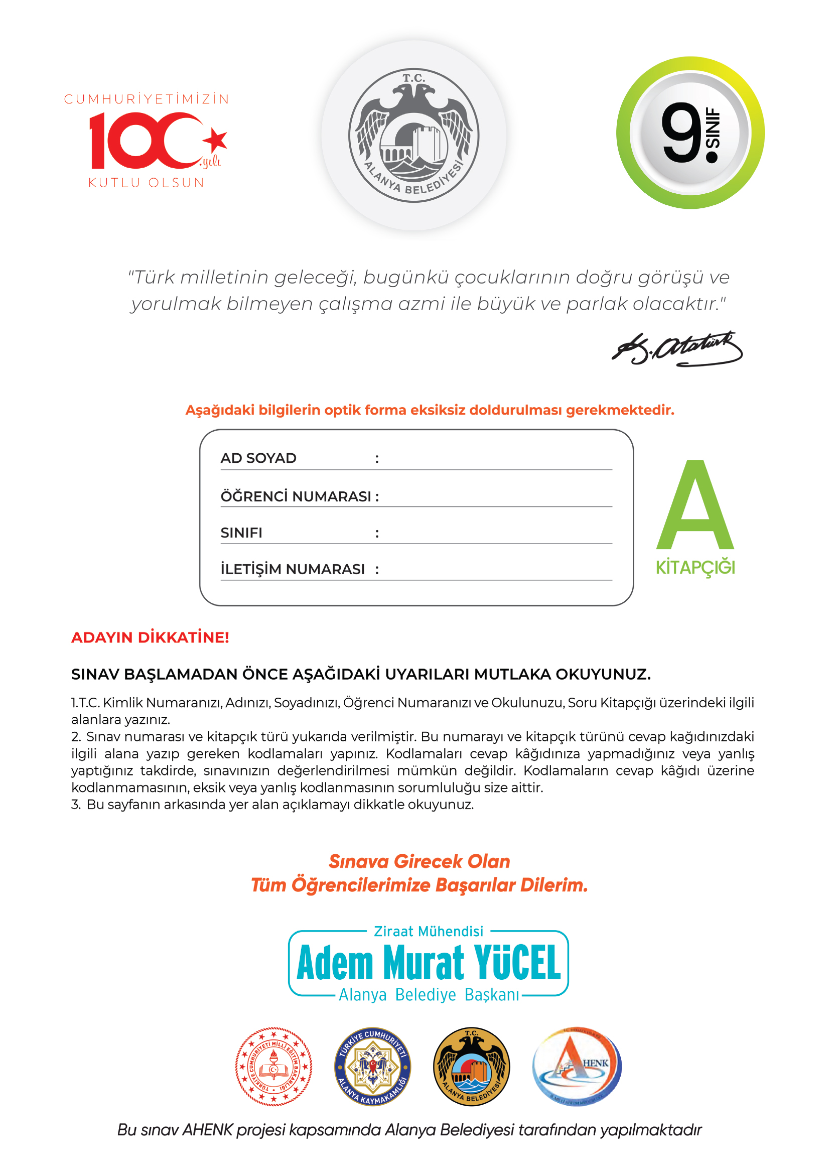 9. Sınıf 3. Deneme A Kı̇tapçığı (Alanya Beledı̇yesı̇)